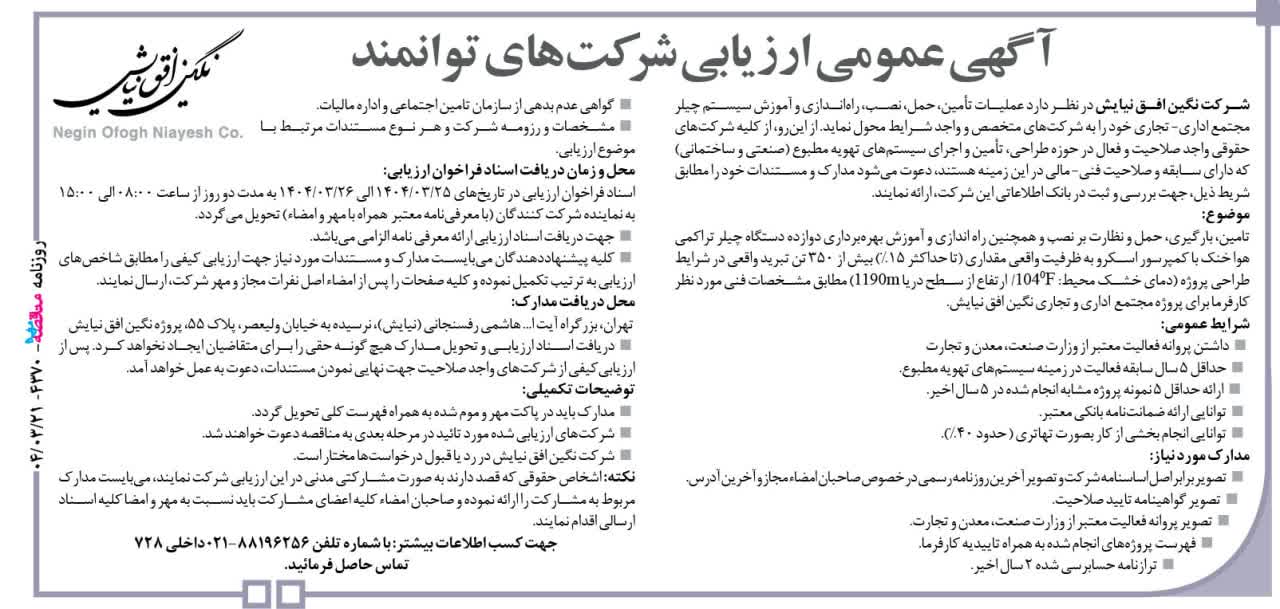ما در شرکت نگین افق نیایش با توکل به حضرت حق و تکیه بر اعتماد سهامداران و نیروی انسانی متخصص و متعهد، در حال اجرای یکی از خاصترین و برترین اَبر پروژههای کشور هستیم. پروژه اداری و تجاری نگین افق نیایش با موقعیت مکانی منحصربهفرد و طراحی کم نظیر خود، در پی ایجاد تعریف جدید از فضای اداری در سطح کشور و در تراز بینالمللی بوده و تبدیل به یکی از بناهای شاخص، مرجع و نشاندار پایتخت خواهد شد. ما در مجموعه نگین افق نیایش در همراهی با تمام تلاشگران عرصه اقتصاد کشور و در راستای سیاستهای کلان و عمل به رسالت اجتماعی خود، استفاده بیشینه از ظرفیتها و توان فنی و مهندسی داخلی را سرلوحه راهبردها و تصمیمهای خود قرار داده و مفتخریم با اشتغالزایی مستقیم و غیرمستقیم در جریان ساخت پروژه و سپس در دوران بهرهبرداری، سهمی هر چند کوچک در بهبود وضعیت فنی و اقتصادی صنعت و خدمات میهنمان و نیز معیشت تعدادی از هموطنان داشته باشیم. در همین راستا آمادگی خود را جهت همکاری با تمام مجموعههای خوشنام، توانمند و باانگیزه فعال در بخشهای مهندسی، خدماتی و تولیدی اعلام نموده و دست یاری به سوی ایشان دراز میکنیم. تلاش میکنیم، از پا نمینشینیم و امیدواریم شاهد روزهای بهتر و رشد و توسعه پایدار کشورمان باشیم.